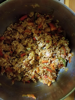 Nel mentre ho soffritto, con poco olio evo, una cipolla tagliata sottile, ho unito un'abbondante quantità di spezie indiane che, a parer mio, donano un gusto speziato senza però risultare piccanti.